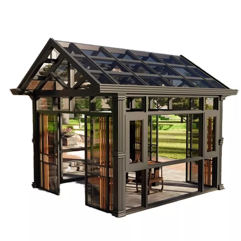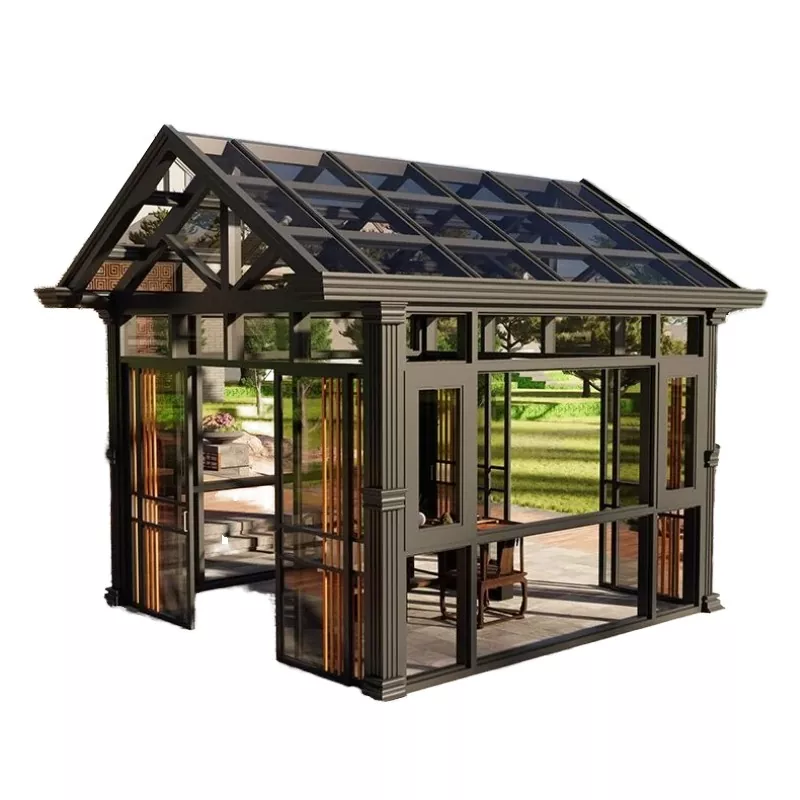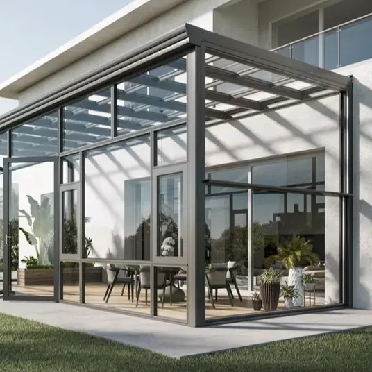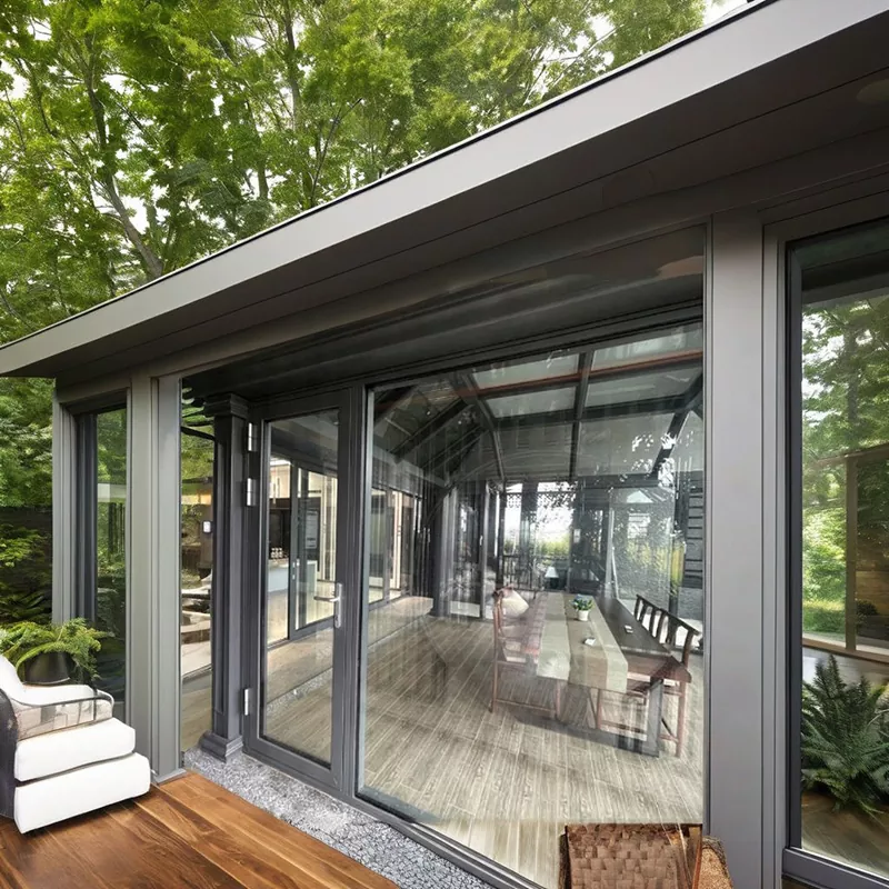 Ο χώρος ηλιοθεραπείας από κράμα αλουμινίου υιοθετεί μια συνολική σύνθετη δομή πλαισίου + γυαλιού. Οι κολώνες και οι δοκοί στερεώνονται από συνδετήρες ακριβείας, με σφράγιση και αδιάβροχη επεξεργασία στις αρθρώσεις. 3%-5% κλίση αποστράγγισης προορίζεται για την κορυφή γυαλί, που ταιριάζει με κρυφά κανάλια αποστράγγισης για την αποφυγή συσσώρευσης και διαρροής νερού. Τα χρώματα πλαισίου μπορούν να προσαρμοστούν, υποστηρίζει διάφορες επιφανειακές επεξεργασίες όπως παγωμένο, χρυσό σαμπάνιας και καφέ, προσαρμογή σε διαφορετικά αρχιτεκτονικά στυλ. Συνδυάζοντας την προαναφερθείσα δεξιοτεχνία και τα πλεονεκτήματα, η συνολική σχεδίαση εξισορροπεί την πρακτικότητα, την ασφάλεια και αισθητική, και μπορεί να προσαρμοστεί με ακρίβεια ανάλογα με τις διαστάσεις της βεράντας.
