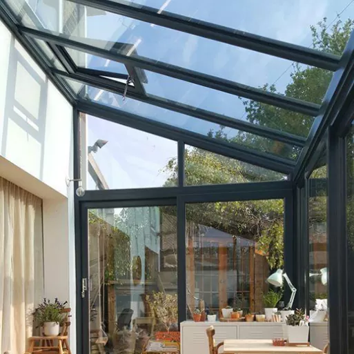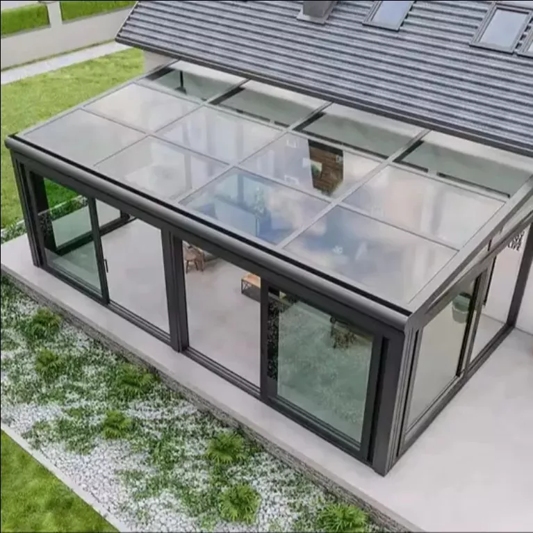 · Προσαρμοστικότητα προσαρμογής: Υποστηρίζει προσαρμοσμένα σχήματα όπως καμπύλες, κεκλιμένες και επίπεδες στέγες, με πολλές επιλογές χρώματος πλαισίου, όπως παγωμένος, χρυσός σαμπάνιας και καφές, που μπορούν να ταιριάξουν με ακρίβεια με τα αρχιτεκτονικά στυλ διαφορετικών σεναρίων όπως π.χ. βεράντες βίλας, προαύλιοι χώροι αναψυχής και εμπορικοί υποστηρικτικοί χώροι, επιτυγχάνοντας την ενότητα αισθητικής και πρακτικότητα.